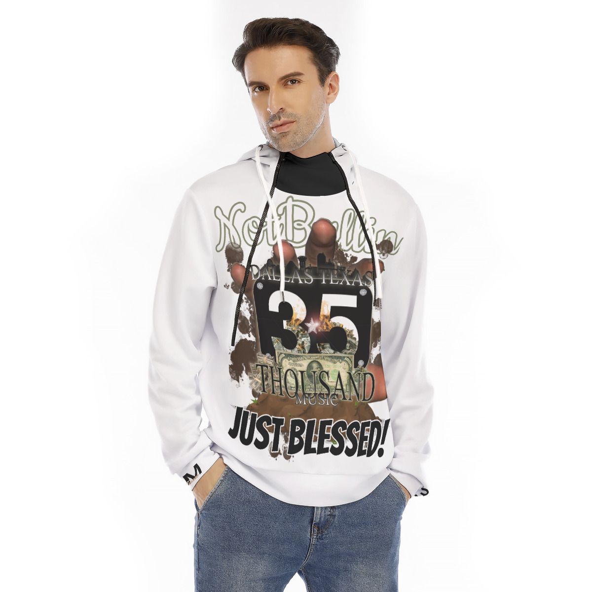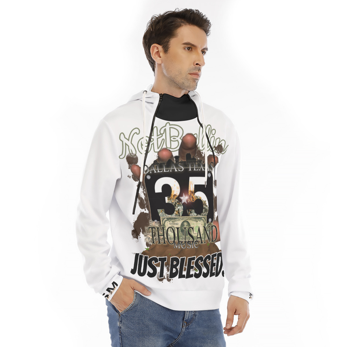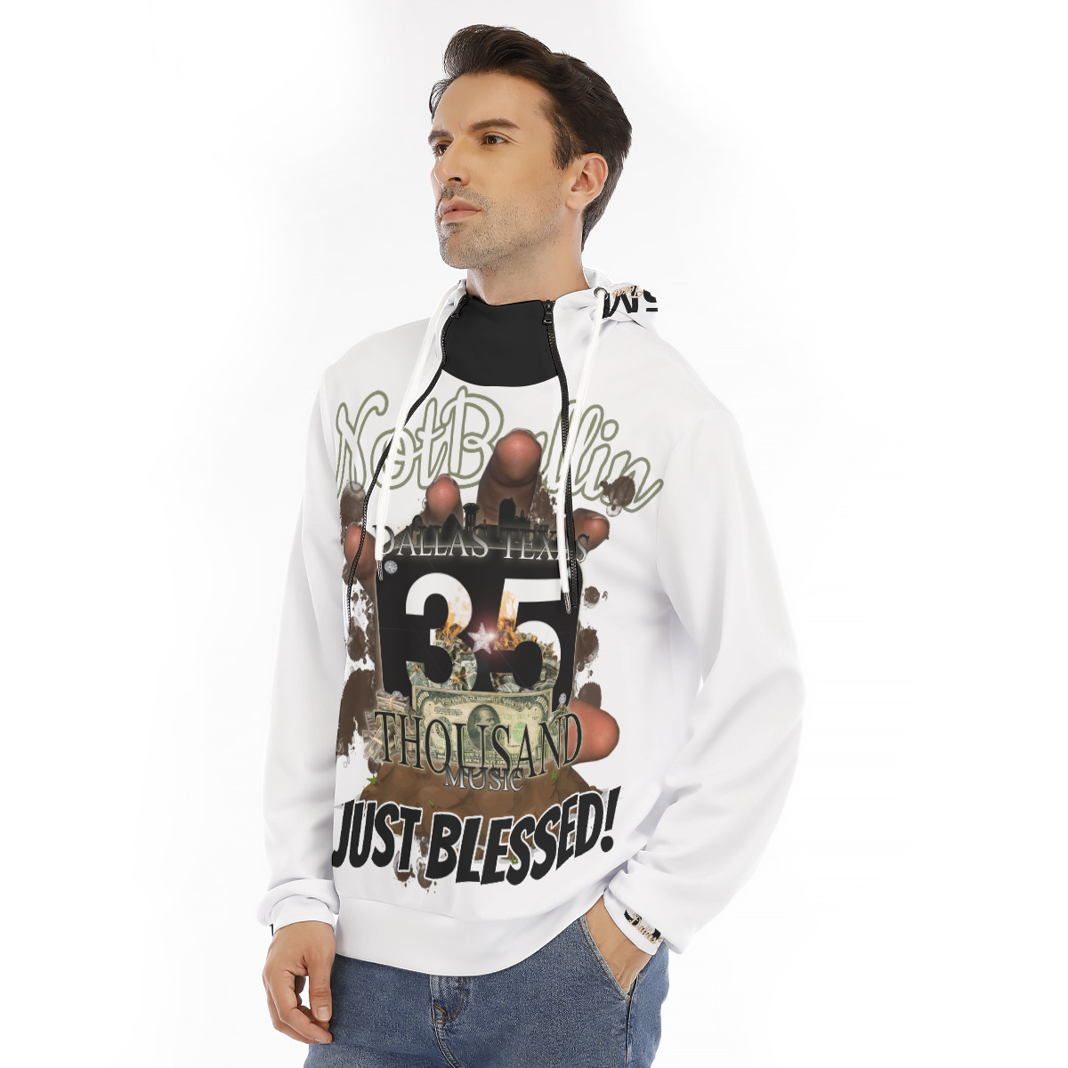 Hoodie With Placket Double Zipper (35M-BLESSED) WHT