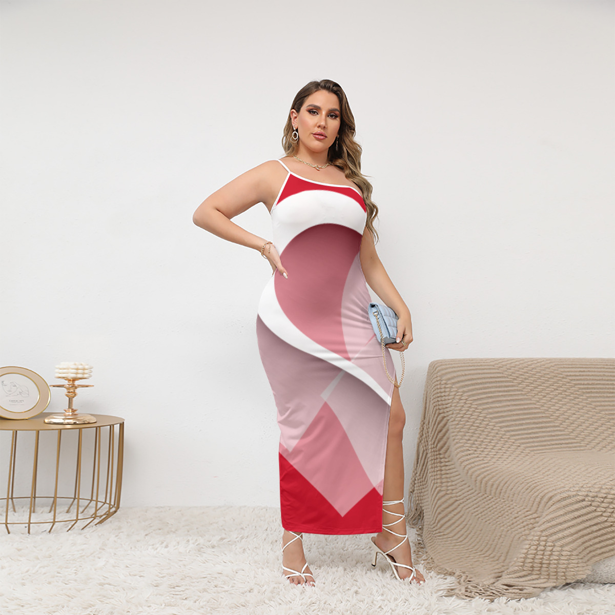 Oblique-Shoulder Exposure Dress With Side Split (Plus Size) – (2GS) MOON/RD