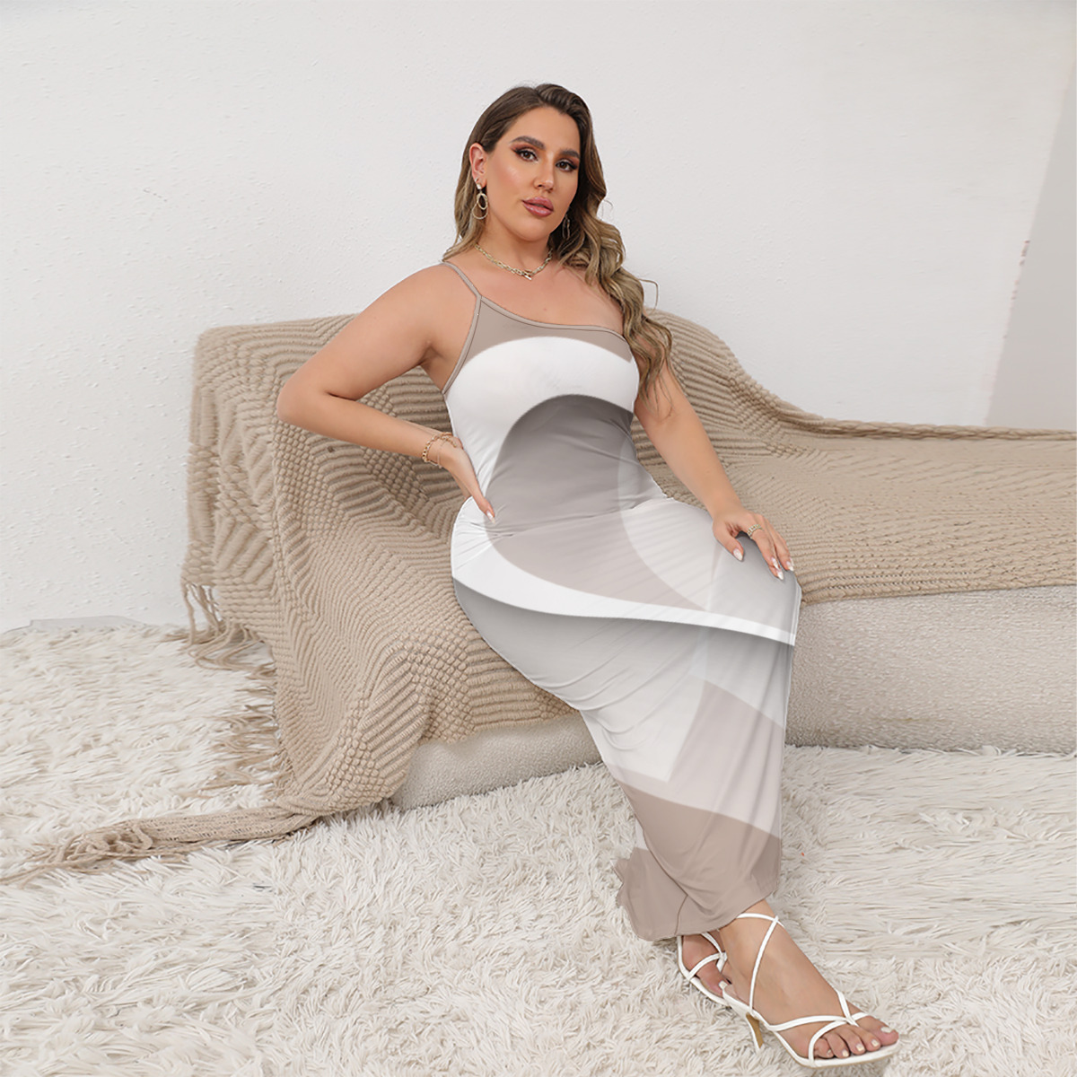 Oblique-Shoulder Exposure Dress With Side Split (Plus Size) – (2GS) MOON/NUDE