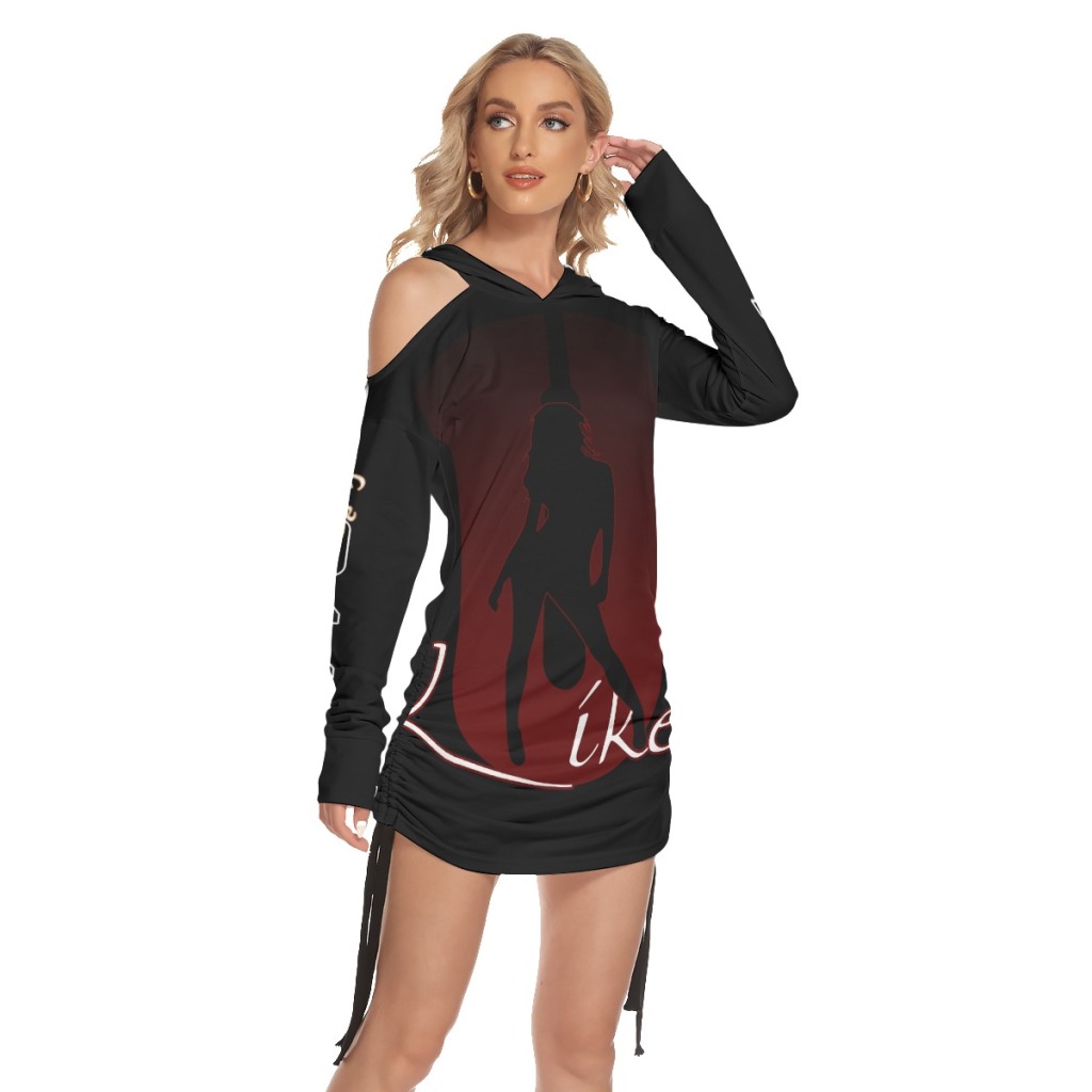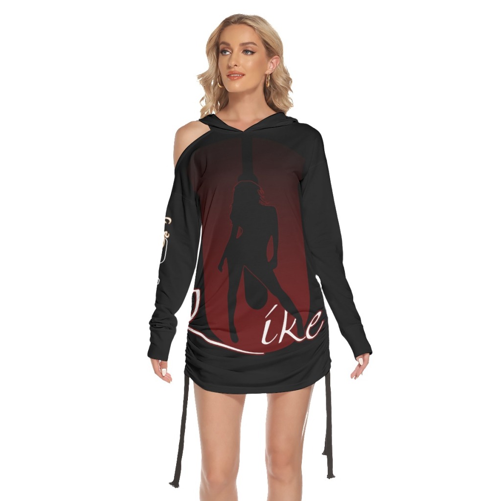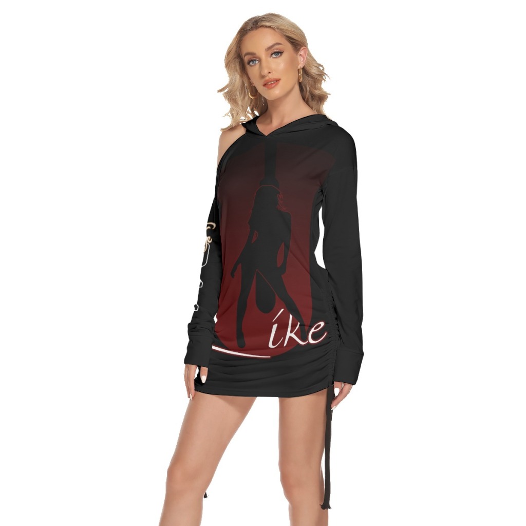One-shoulder Dress With Waist Shirring (2GS-ULIKE) BLK
