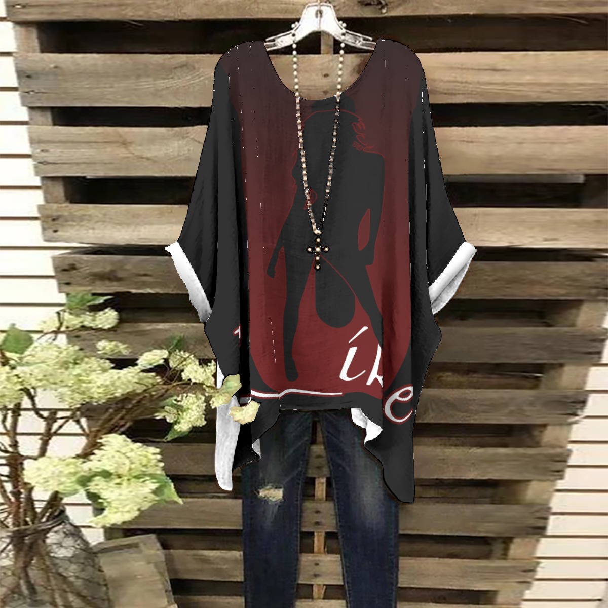 A fashionable shirt with an bat sleeve design and irregular crosses on the hem; Nice fabric can provide you with all-day ease and comfort