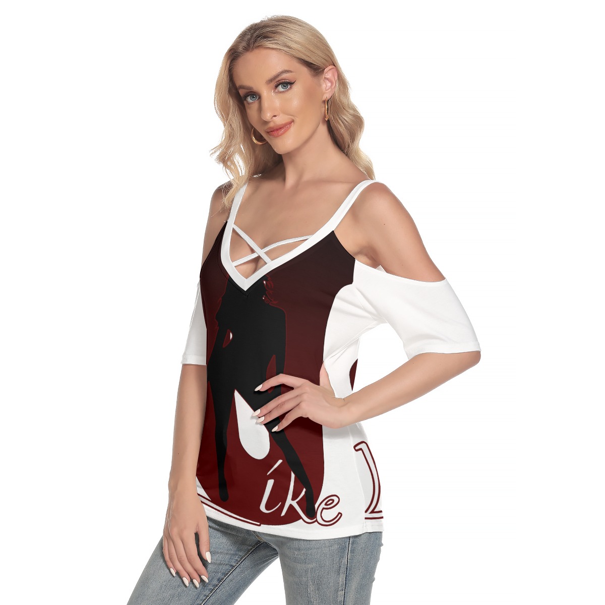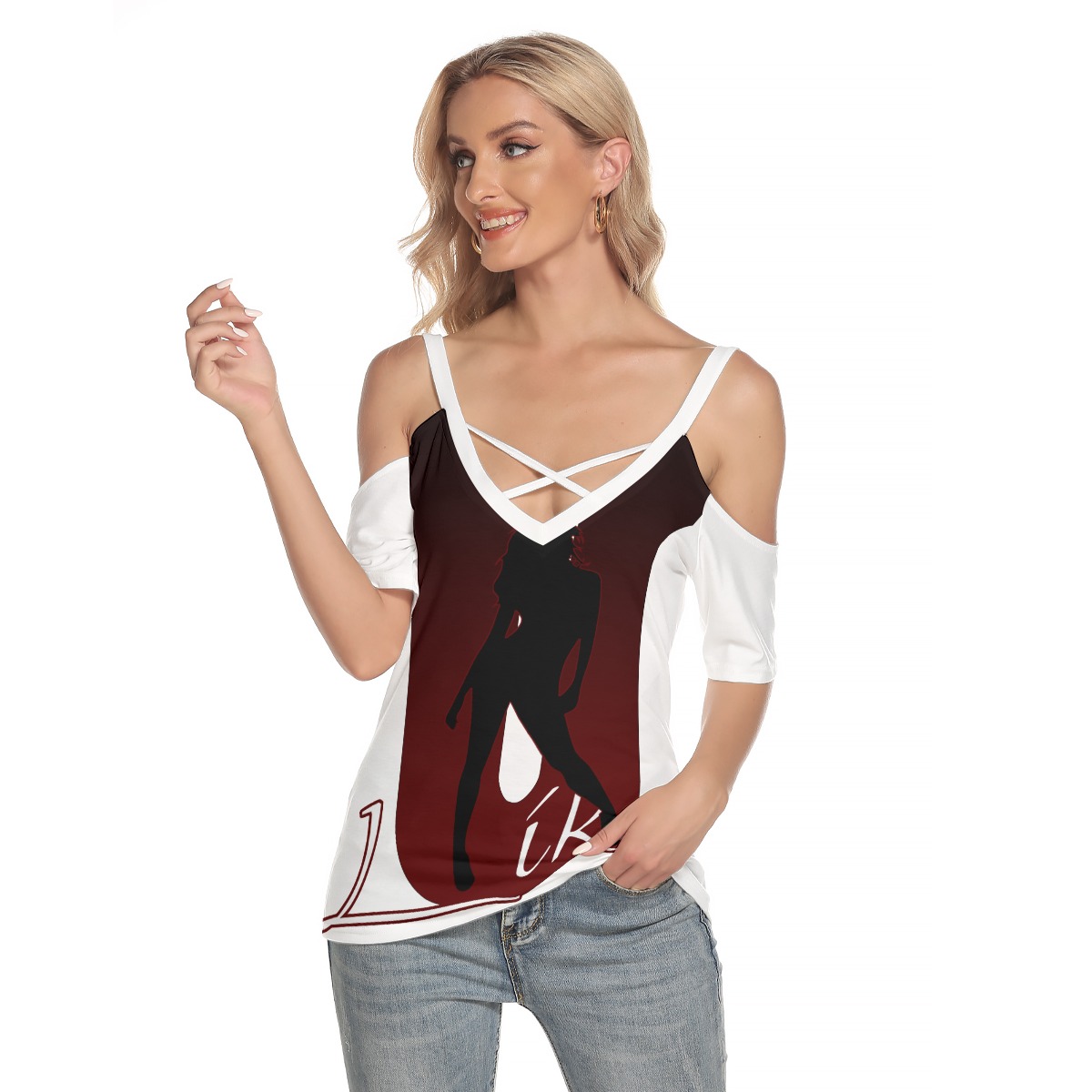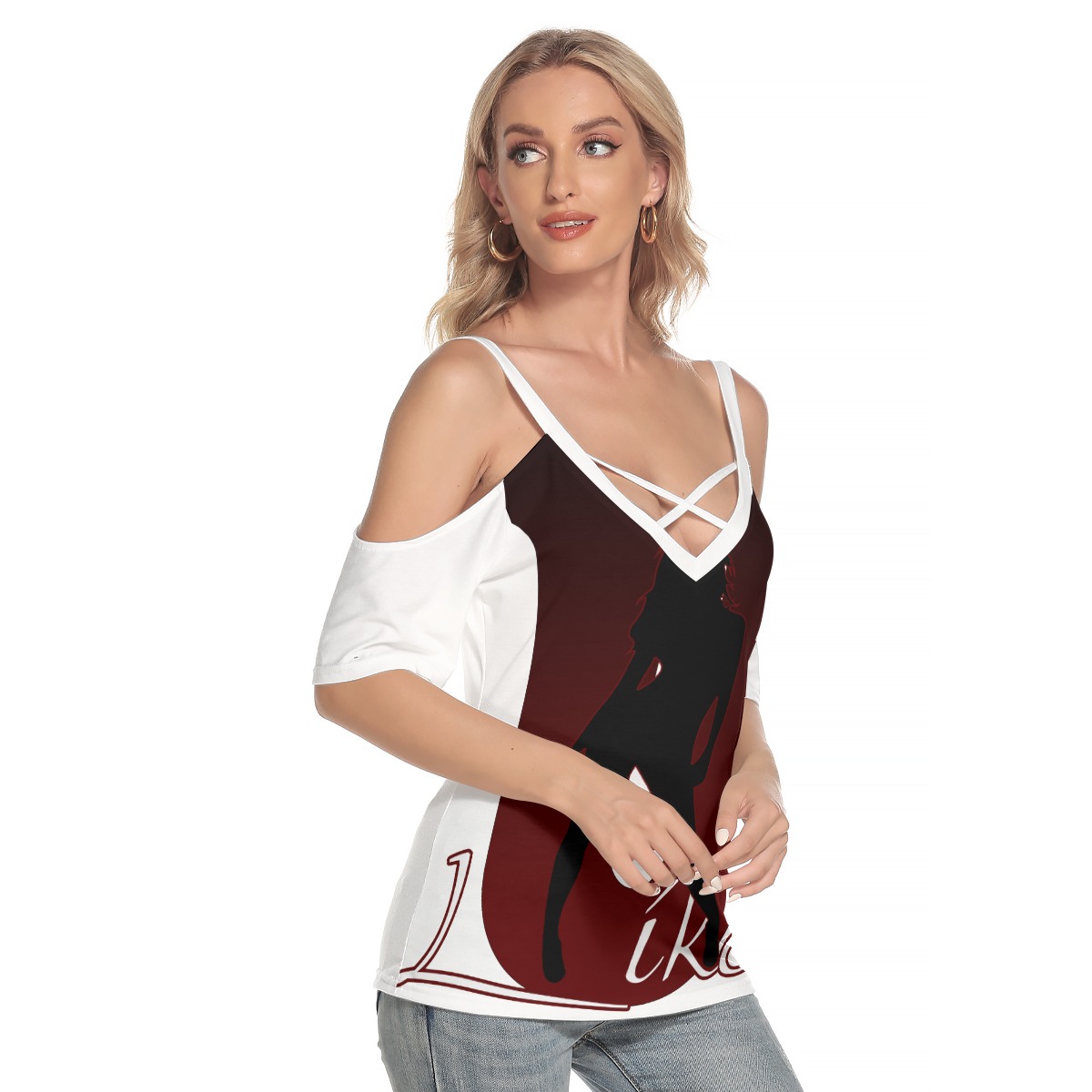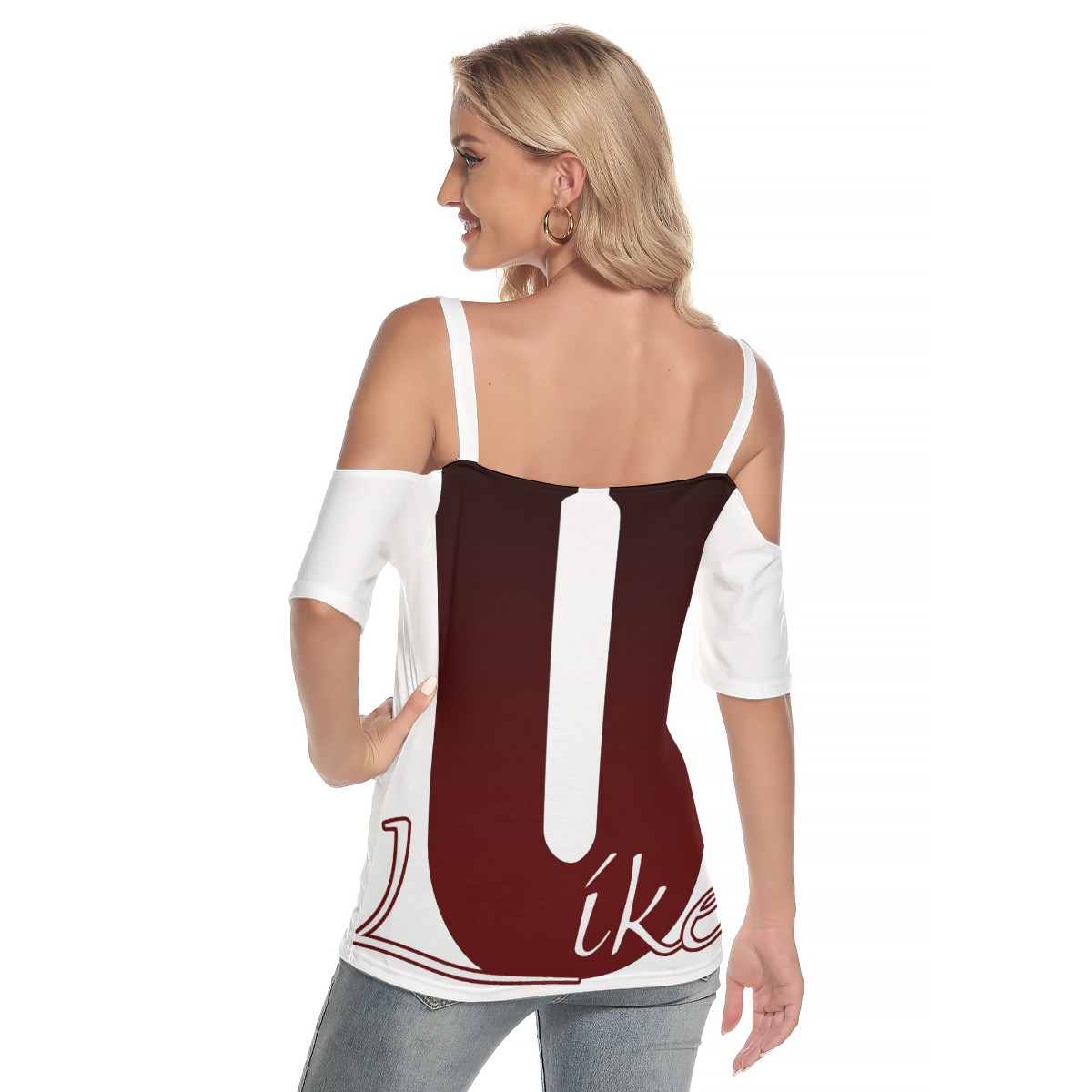 Cold Shoulder T-shirt With Criss Cross Strips (2GS-ULIKE) WHT