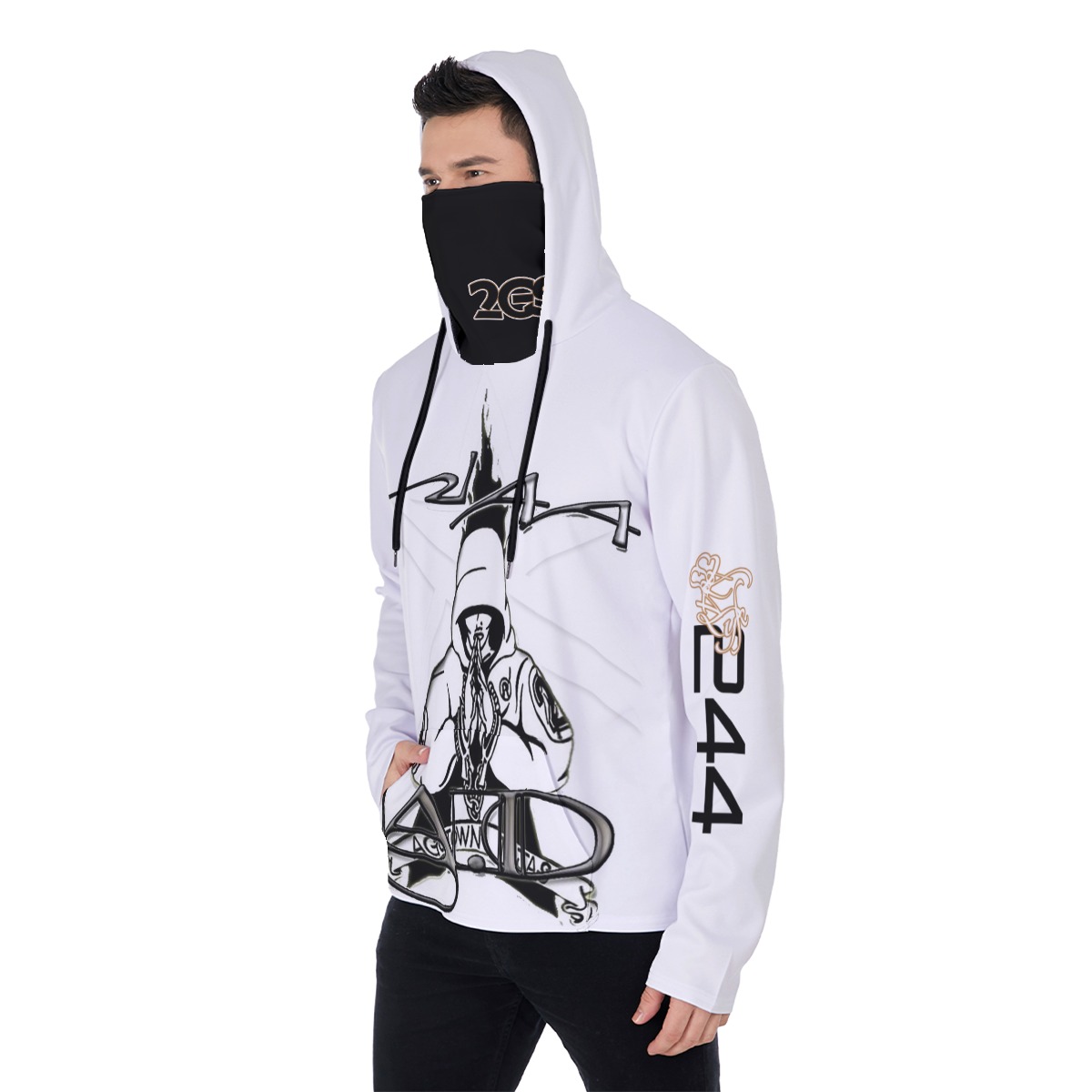 Heavy Fleece Hoodie With Mask (2GS-AGGSTATE) WHT